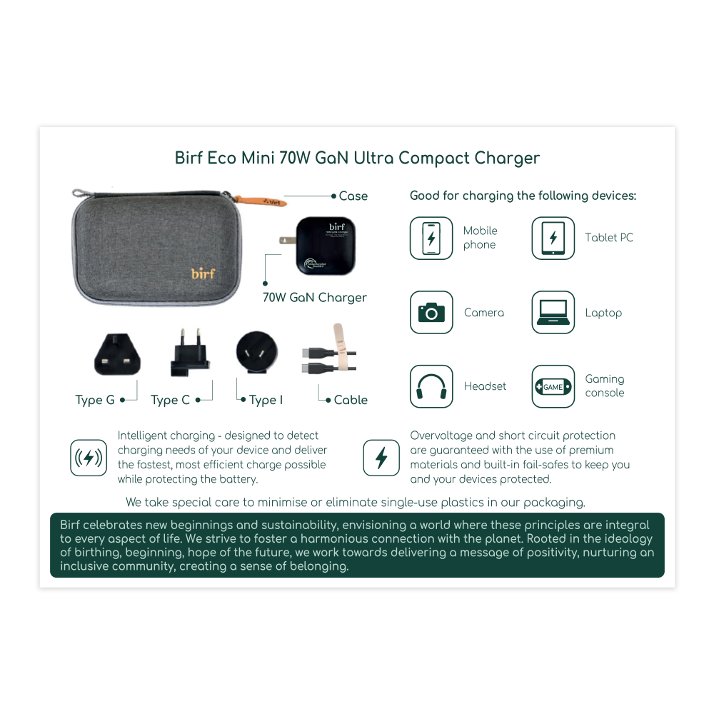 Birf Eco Mini 70W GAN Ultra Compact Travel Charger